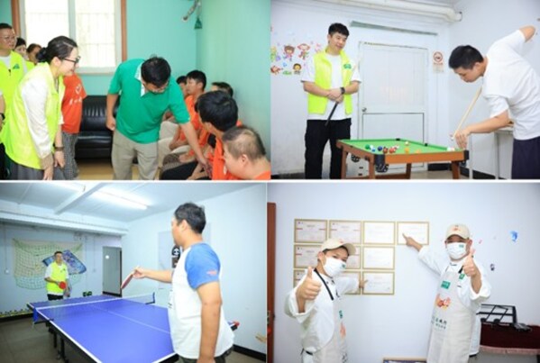 随后,太太乐志愿者与帮扶的原悦苗园学员们(以下简称“学员们”)展开了温馨的互动,一同打乒乓球、桌球,还共同做手工,用真挚的陪伴传递着温暖与关怀。在欢声笑语中,这些特殊孩子与外界的隔阂逐渐消融,彼此的心紧紧相连。