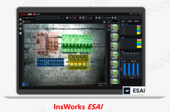在工具实际应用中,AI能力的落地常常受限于技术门槛,而INSWORKS-ESAI零代码平台打破了这一壁垒——即便是非AI研发人员,也无需编程,通过拖拽操作即可完成检测模型搭建,完成从数据管理到智能标注再到模型训练的全流程部署,将搭建模型简化为“搭积木”式操作。