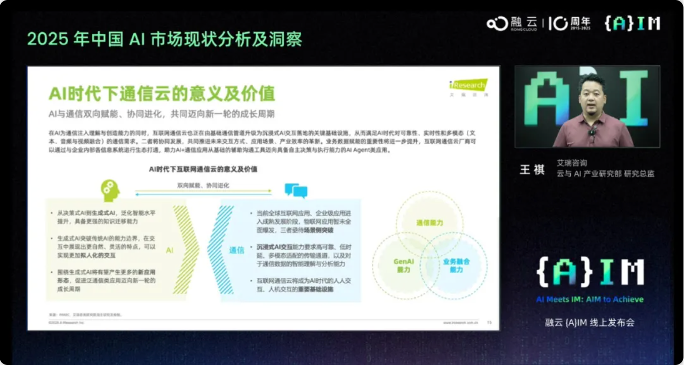 这一点,在艾瑞咨询云与AI产业研究部研究总监王祺的分享中也得到了印证。他提出,通信是AI时代最核心的载体。我们与大模型的一切交互,无论是文本、语音还是视频,都依赖通信技术实现传输与响应。