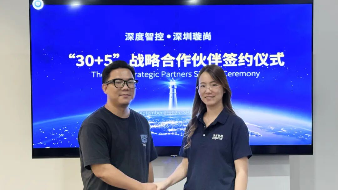 压轴环节,深度智控与深圳璇尚签署“30+5”战略合作协议,将会议氛围推向高潮。这不仅是一次区域合作落地,更是深度智控深入华南、共建生态的强烈信号。