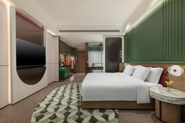 酒店入户酒店位于交子金融商圈内,是成都的核心商务区之一。紧邻成都市新地标双子塔,直线距离SKP高端商业区1公里、成都东站8公里、双流国际机场12公里,兼顾高效商务与深度城市体验。酒店配备236间客房及套房,以世界首张纸币"交子"为设计灵感,同时融入四大发明中的造纸术和雕版印刷元素,化身北宋商贸美学的当代展馆。所有客房均配备戴森吹风机、德龙热水壶、雀巢胶囊咖啡机和唯宝卫浴等现代化设施,为宾客带来舒适现代体验。