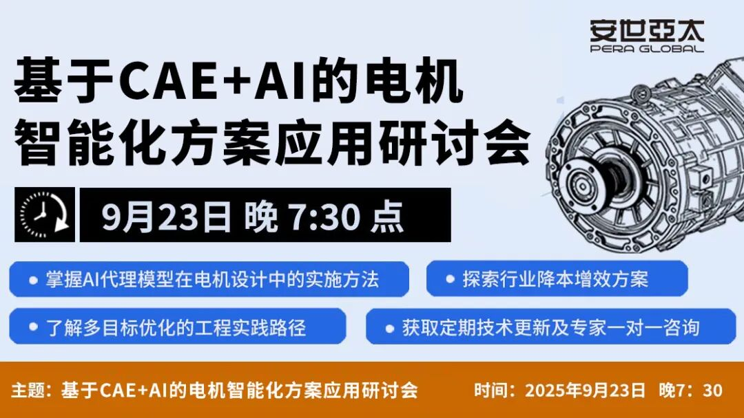 基于CAE+AI的电机智能化方案应用研讨会将于2025年9月23日举办,期待您的参与,携手推进电机产业智能化升级!