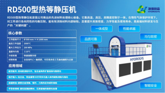 海德利森首台直径500mm的“双两千”热等静压设备(HIP)正式面世,其最高工作温度达2000℃、最大压力2000大气压(200MPa),可处理尺寸达直径500mm、高度1000mm的大型构件。作为国内极少数具备该等级设备研制能力的民营企业,海德利森凭借该设备实现多项技术突破,跻身热等静压装备行业第一梯队。