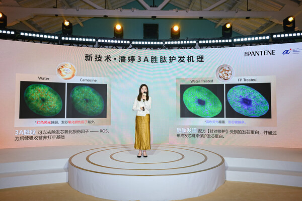 作为当晚的主角,第四代潘婷胜肽泡弹系列首度亮相。源自高端医美领域的3A胜肽成分,实现蛋白质结构重组,塑造更强韧健康的发质,实现"以肽养发"的行业突破。据潘婷首席研发科学家王思源介绍,潘婷从上千种成分中锁定了医美界的明星"胜肽",它兼具高渗透率、高效抗氧及重塑发芯键的六边形战士能力。潘婷联合中科检测在内的三大权威检测机构及研究所,通过气相色谱定量法,荧光寿命显微成像等多重方法多方验证了3A胜肽配方的护发功效,证实3A胜肽不仅能够进入发芯,清除发芯氧化因子,为营养吸收打下基础,还通过重建发芯键,重塑发芯蛋白结构。其中,荧光寿命显微成像检测是由潘婷科学家联合新加坡科技研究局(A*STAR)的检测专家共同进行的,这是该技术首次被应用于护发研究领域。新品的背后少不了来自权威专家、机构以及真实消费者的强力背书。此次高纯度胜肽不仅获得了中科检测的功效报告实证,更拿到诺贝尔生理学医学奖获得者Jeffrey.C.Hall教授的亲身证言。品牌还携手专业测评团队"老爸评测"开启百人粉丝众测。试用反馈显示,首次使用当天,受试者对发膜弹、韧、亮、顺功效平均满意度超过90%以上。