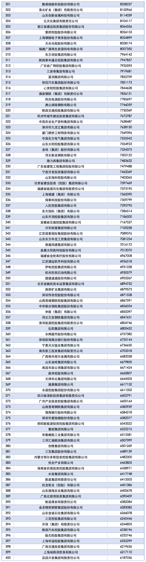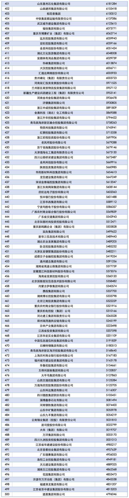 “2025中国企业500强”榜单