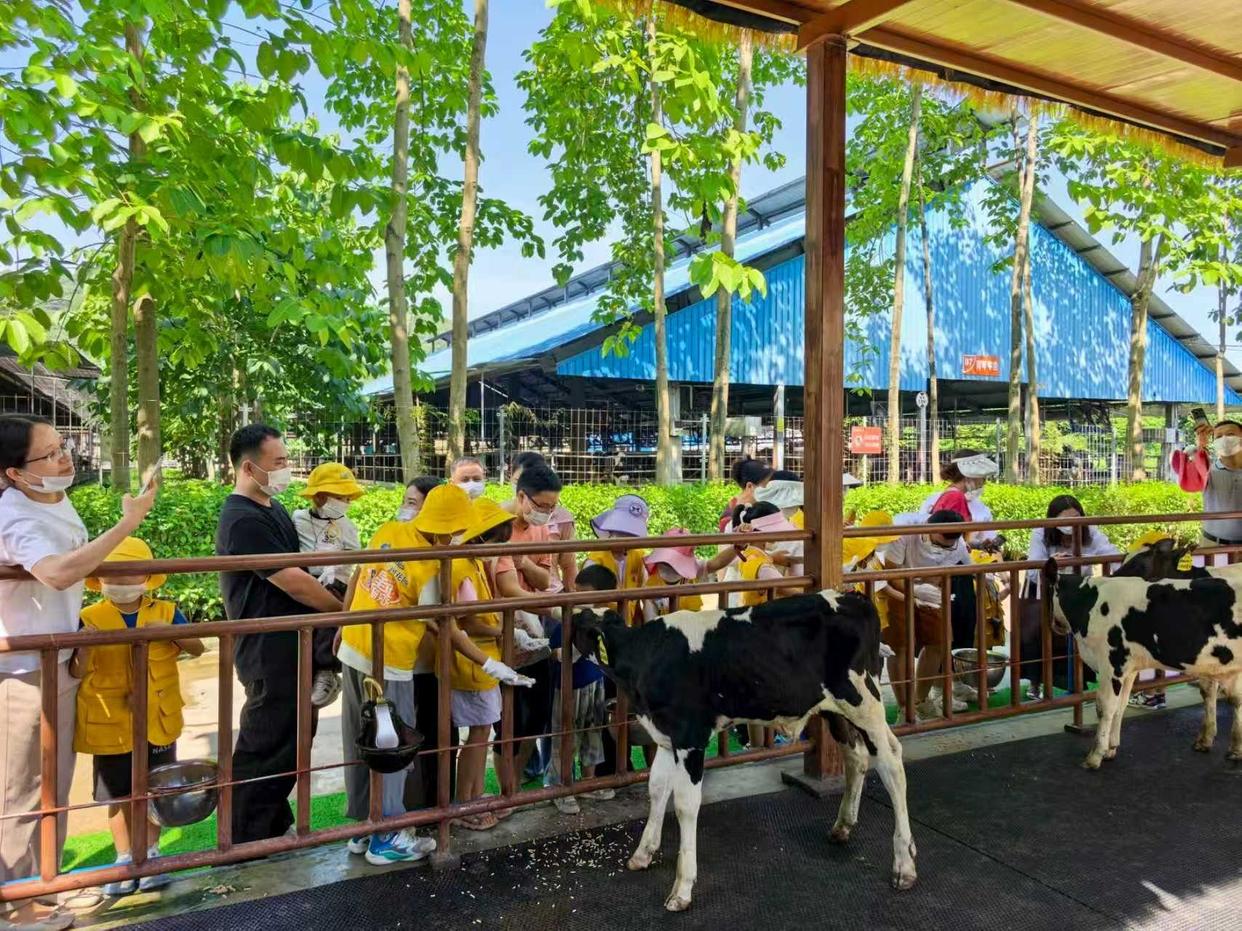 “牛奶+工厂”也是暑假孩子们特别感兴趣的“工厂游”项目。位于广州市增城区的一个牧场的负责人刘浩轩告诉记者,今年暑假,他们的游客量比往年有明显增长。相比景区,他们的“工厂游”项目预约并不那么容易。