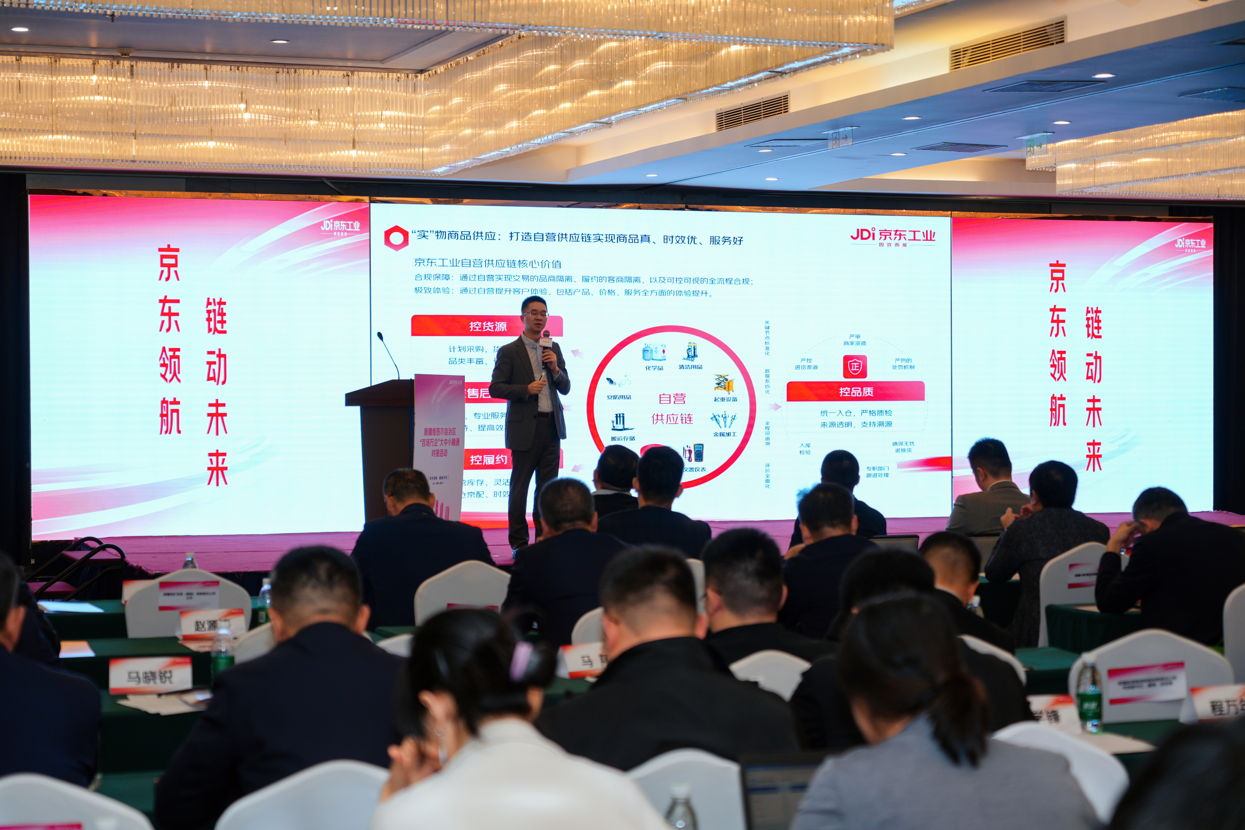 9月19日,新疆维吾尔自治区2025年“百场万企”大中小企业融通“京东工业平台”产业链供应链对接活动,在乌鲁木齐市环球国际大酒店会展中心举办。该活动以“京东领航 链动未来”为主题,将正式启动京东工业平台线上大中小企业融通平台。