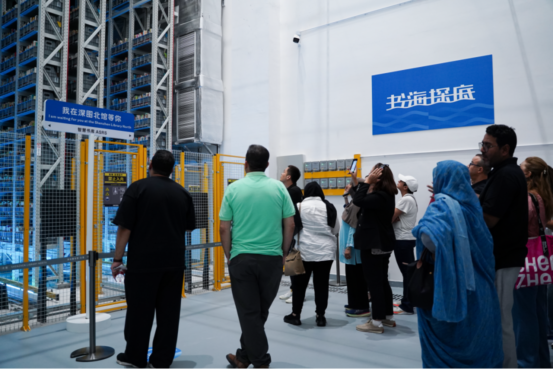诸如此类触碰前沿科技的时刻还有许多。研修班走进腾讯滨海总部,近距离了解中国领先的互联网科技企业在数字文化、智慧城市等领域的创新实践;乘坐超高速多媒体观光电梯,登顶地标平安金融中心,360°俯瞰深圳城市风貌;观看无人机表演,领略“硬核”科技与城市夜空的浪漫融合;踏入藏在深圳图书馆北馆的中国最大地下智能立体书库,从400万册书海中高效调取目标书籍。