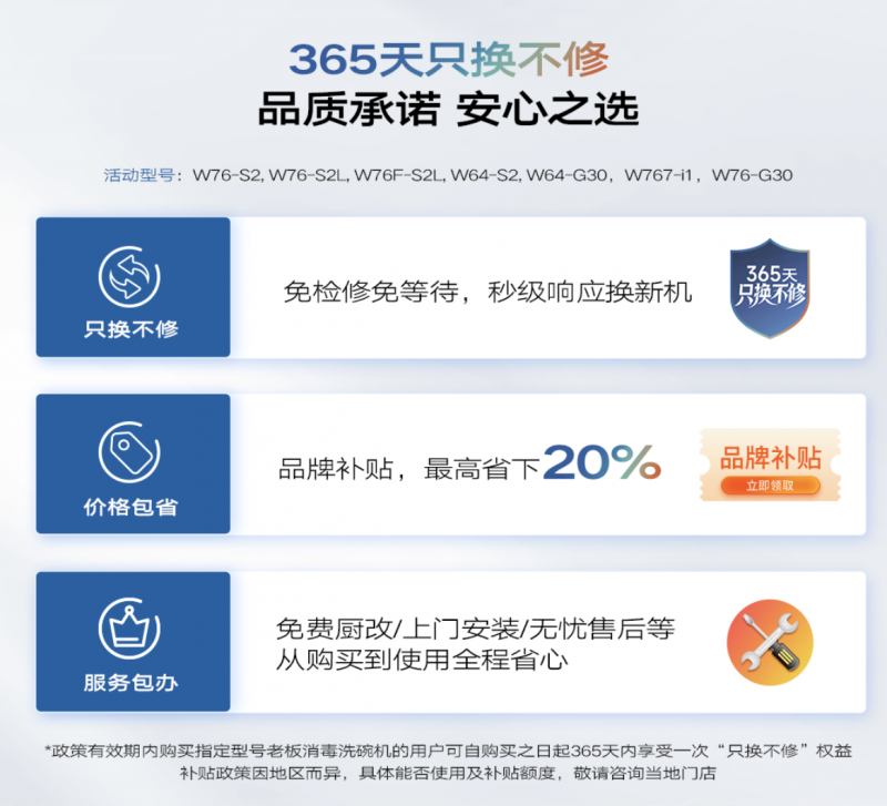 在产品之外,老板消毒洗碗机更将“中国标准”延伸至服务与行业生态层面,推出消毒洗碗机“365天只换不修”品质承诺,展现企业对自身品质的自信,也重新定义了家电服务的标杆。该政策意味着消费者在购买一年内出现非人为质量问题,可直接换新,无需经历繁琐的维修流程。全国范围内数千个服务网点、24小时在线响应、快速上门安装等举措,共同构建了一套高效、可靠的服务体系,彻底消除用户的后顾之忧。