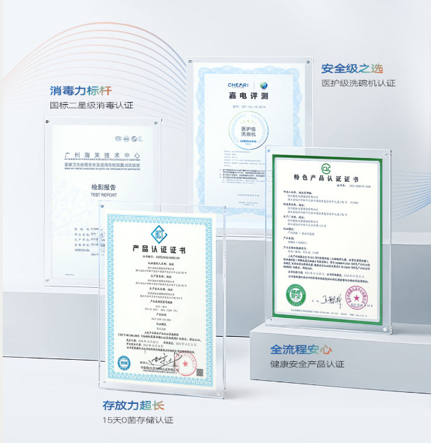 该技术已通过国家二星级消毒认证,医护级洗碗机认证,0菌认证,达到家用洗碗机消毒最高等级,可有效去除幽门螺杆菌、脊髓灰质炎病毒等,真正实现了“碗净无残菌,用餐更安心”。