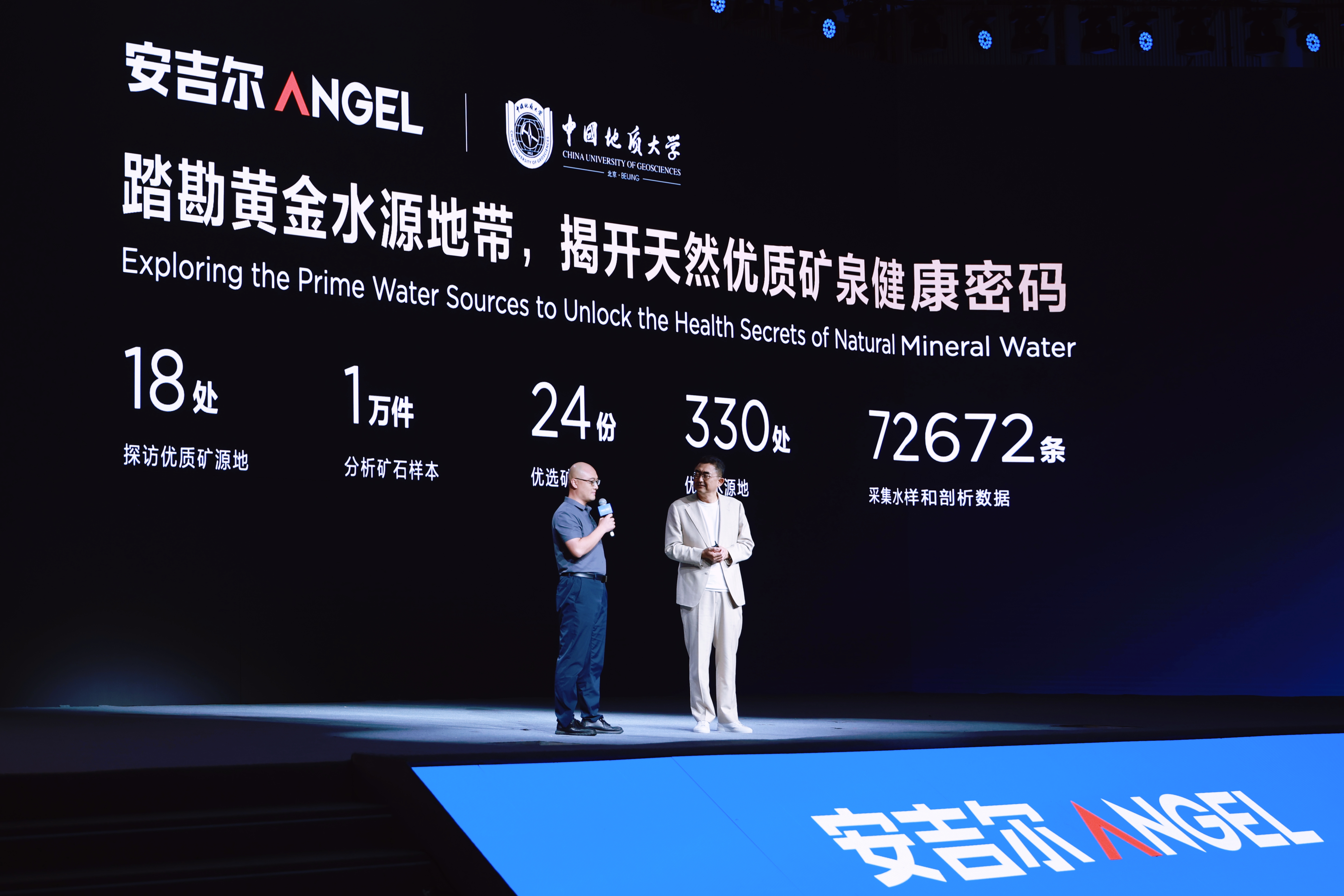 直面行业挑战,安吉尔携手中国地质大学“地下水质与健康”教育部重点实验室共同探寻“解法”。钱坤教授现场分享了与安吉尔共研的最新成果:经过勘探18处优质矿源地,分析1万件矿石样本,调研330处优质水源地、采集7万余份水样后,发现传统长寿区域水源普遍含有比例适宜的钙、镁离子,这种天然形成的“黄金配比”满足了人体日常需求,为健康饮水提供重要的科学依据。