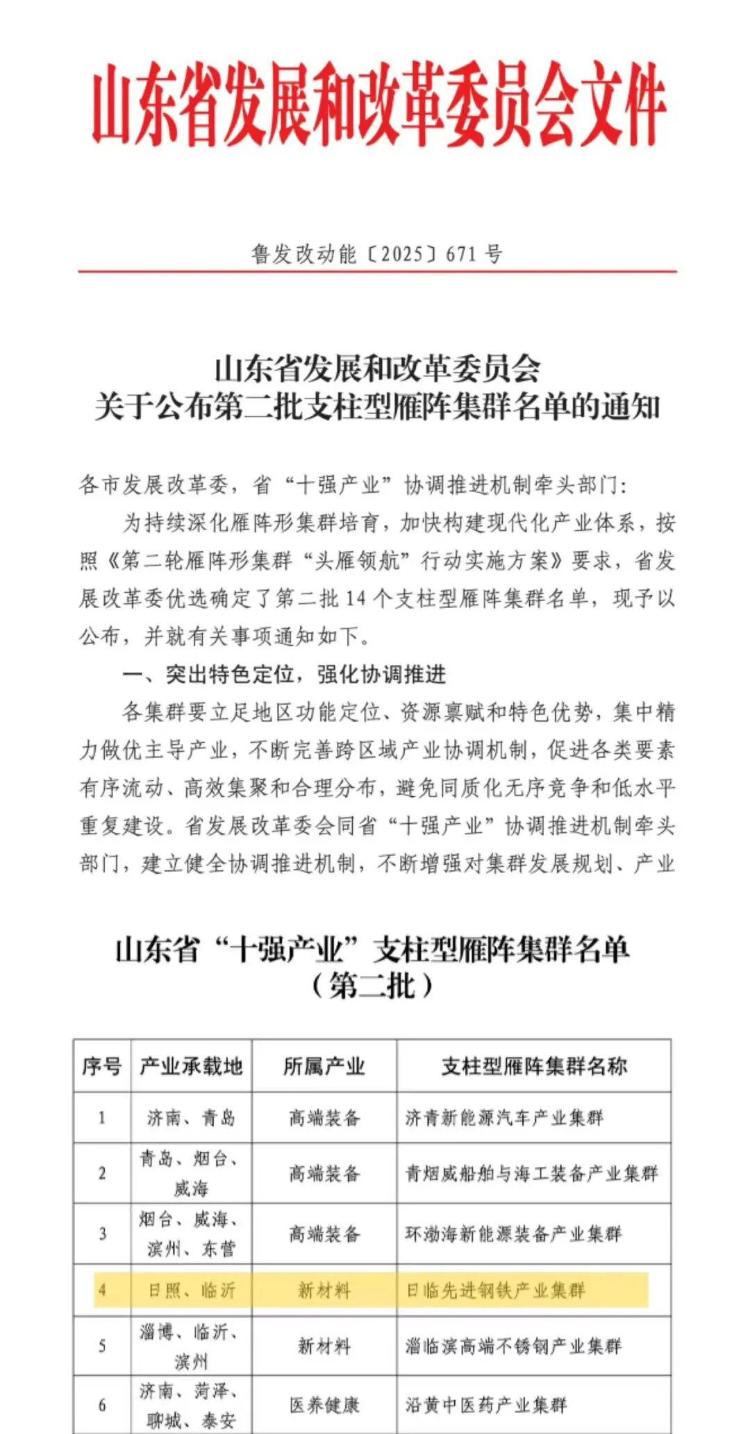 近日,山东省发改委公布省“十强产业”雁阵型产业集群、第二批支柱型雁阵集群和集群领军企业名单。其中,日照低空经济产业集群、日照浆纸一体化产业集群新入选2025年度省“十强产业”雁阵形产业集群,和临沂市联合申报的日临先进钢铁产业集群新入选省第二批支柱型雁阵集群,日照港集装箱发展有限公司新入选省“十强产业”集群领军企业。截至目前,日照市共有省“十强产业”雁阵形产业集群9家、支柱型雁阵集群3家、集群领军企业13家。