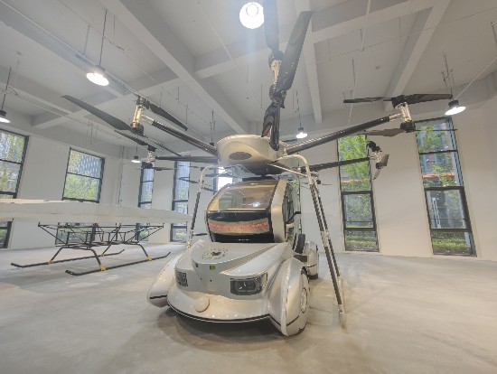 来自北京理工合肥无人智能装备研究院的分体式飞行汽车。张玉莲/摄