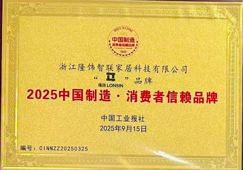 在高度同质化竞争中,品牌价值日益成为企业核心竞争力的关键性因素。现正值全国质量月期间,2025中国制造·消费者信赖品牌(第三批)名单发布,隆饰板材成功荣膺“2025中国制造・消费者信赖品牌”这一重磅殊荣。