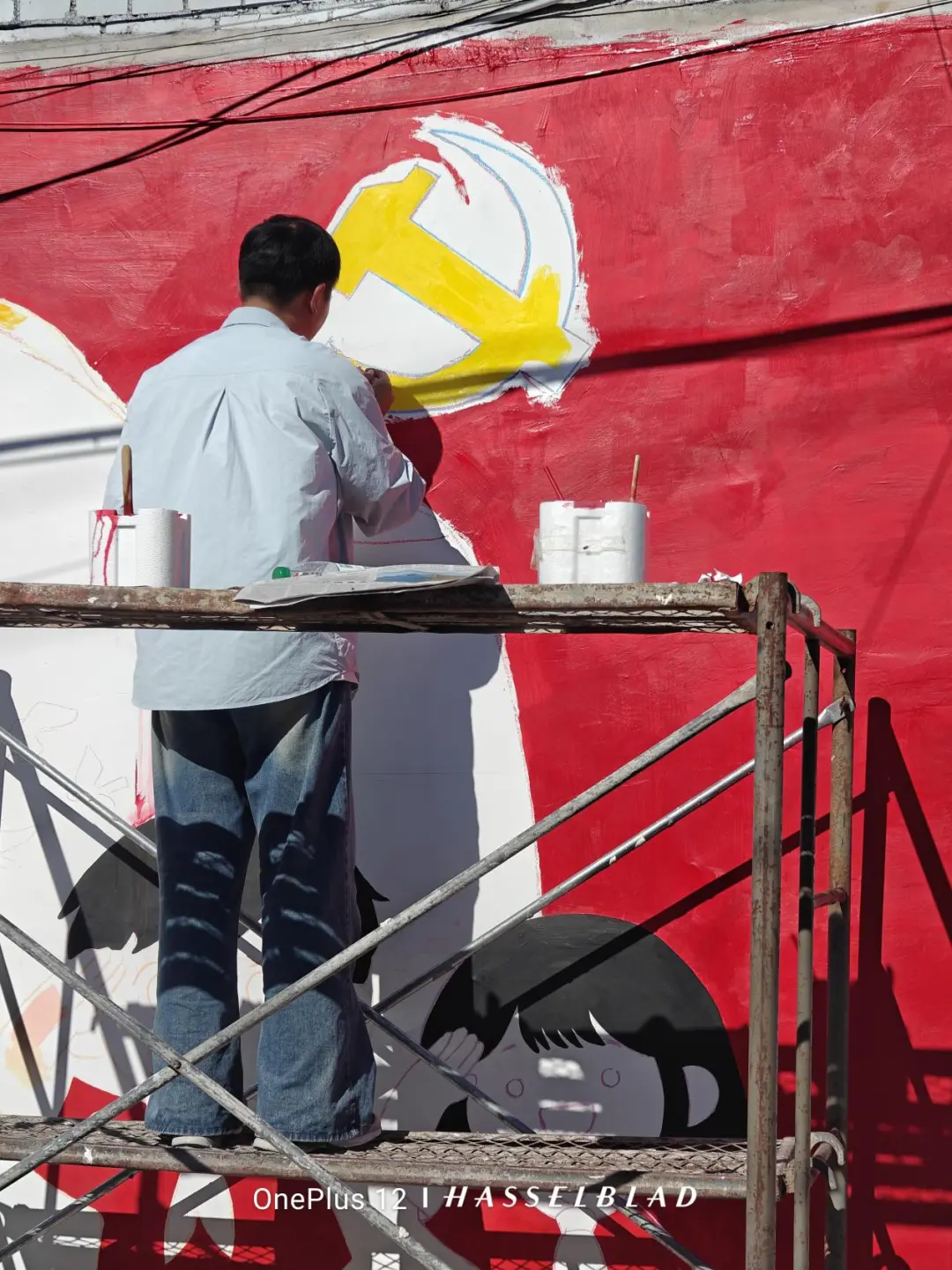【红色党建主题区】由河南艺术职业学院与扬州文化艺术学校联合完成。8月29日,河南艺术职业学院校团委、美术学院组织师生实践团队,奔赴娄烦县开展了为期10天的主题实践活动。墙绘以红色党建精神、做“四讲四有”合格党员,以及以时间轴形式呈现2015–2025年间文旅部帮扶官庄村的重要事件,包括修缮村委会、物资支援、非遗过大年、民俗展室设立、官庄小学改造、直播间建设、妇女锣鼓队成立、文化课堂进乡村等,全面展示党建引领下的帮扶成果与乡村振兴新貌。师生们细致刻画村庄新貌,从崭新的民居、丰富的文化生活,到村民们幸福的笑脸,每一笔都饱含着对乡村发展的赞美。
