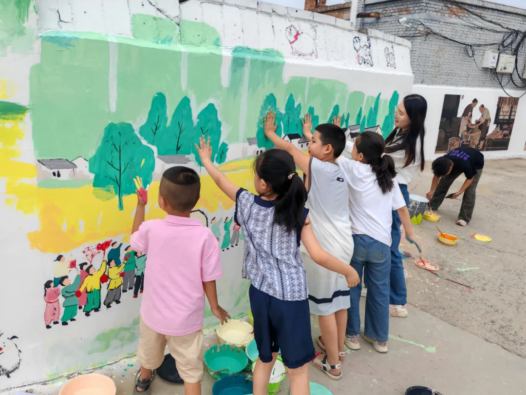 值得一提的是,本次墙绘不仅是艺术创作,更是一场深入乡村的美育实践。山东文化艺术职业学院师生在创作之余,开设乡村美育课堂,带领当地留守儿童共同绘画,引导他们用笔触描绘家乡、表达自我。许多孩子表示:“这个暑假从来没有这么开心过”“比在家玩游戏更有意义”。