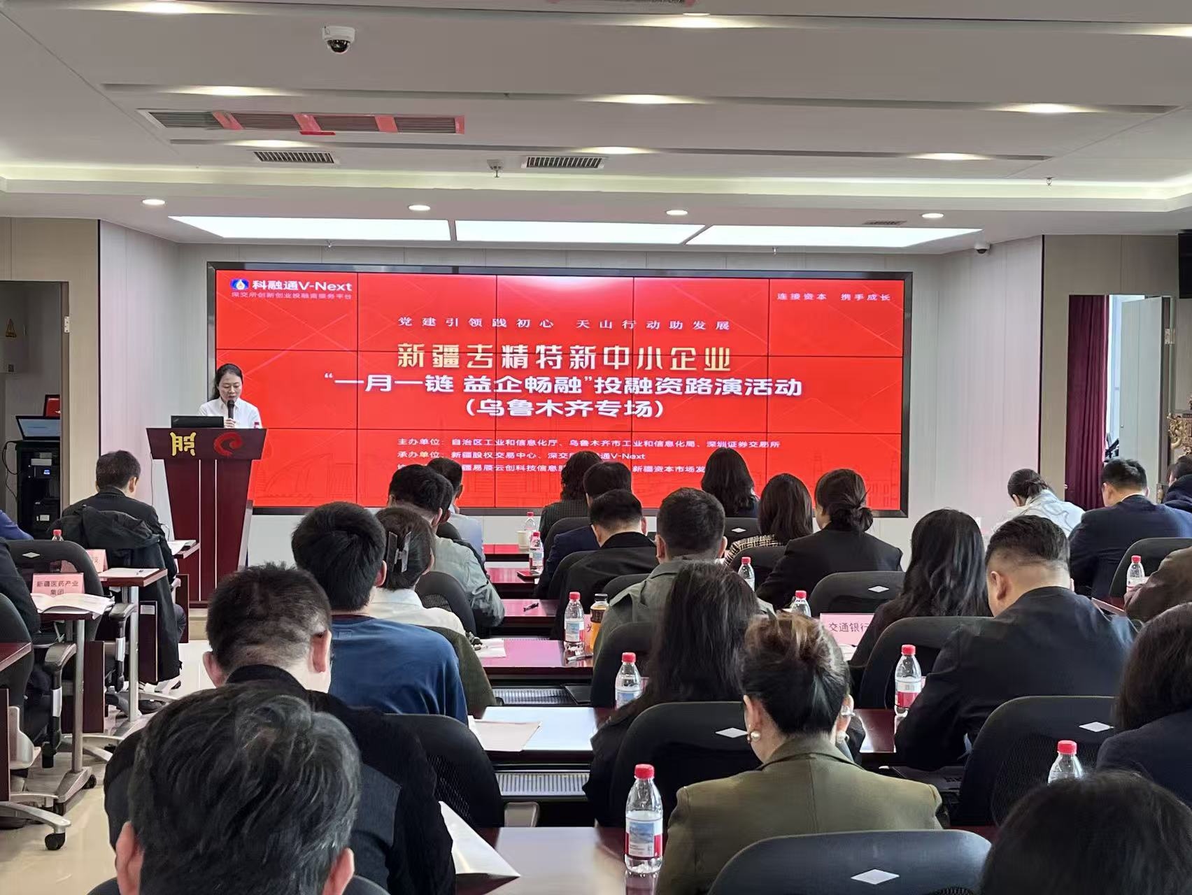 为进一步贯彻落实党的二十届三中全会关于“构建促进专精特新中小企业发展壮大机制”的决策部署,加快构建中小企业融资促进良好生态,助力中小企业高质量发展,通过组织系列融资对接活动,引导金融资源更加精准支持链上中小企业,促进广大中小企业专精特新发展。10月10日下午,新疆专精特新中小企业“一月一链 益企畅融”投融资路演活动(乌鲁木齐专场)在金融大厦开展。
