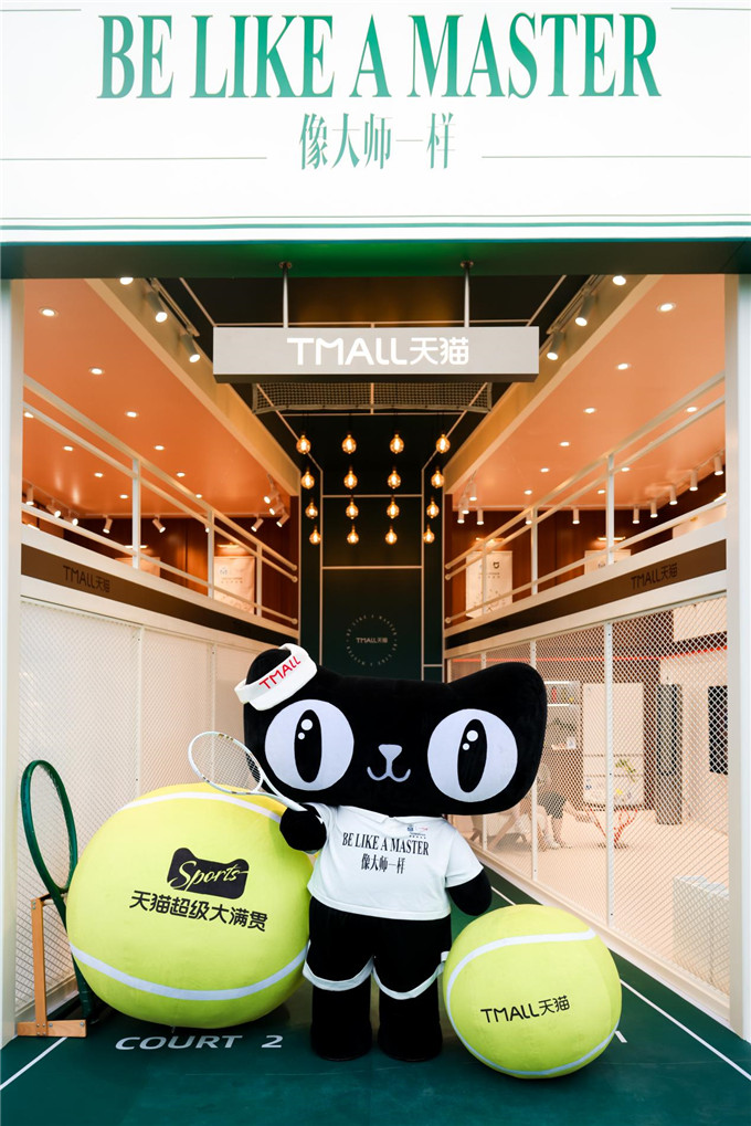 紧邻赛场入口处,天猫打造了一方“Belikeamaster”的展示空间,以网球场地优雅的绿色和木色为主调。走入空间内部,雅诗兰黛的粉底色变成了一张张“lockdoor”,小米米家、美的产品中常常出现的奶白色、金属色,都无缝融入环境中。它们既保留了自身的标志色特质,同时,也与网球运动的基调匹配。避免了生硬的拼接感,保证了与整体赛事传播的一致性。