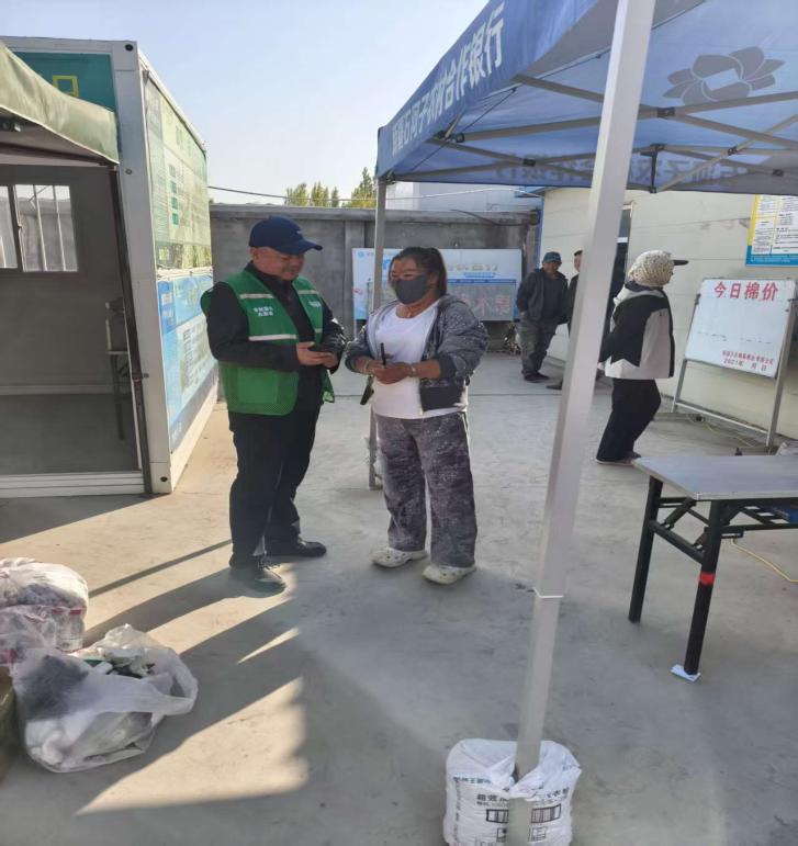 青年业务骨干组成的秋收服务先锋队,长期驻守垦区80家加工厂,在临时服务点现场为农户提供身份证件复印、银行卡登记等服务,确保售棉款及时、准确、安全到账。从棉花称重到结算支付,从磅房到财务室,随处可见农行员工忙碌的身影,他们以专业细致的服务赢得了广大农户及企业的认可与好评。