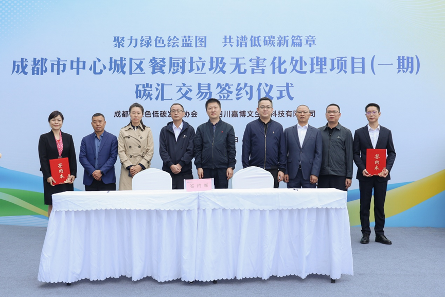 10月21日,成都市中心城区餐厨垃圾无害化处理项目(一期)碳汇交易签约仪式在成都举行。项目运营方四川嘉博文生物科技有限公司与成都市绿色低碳发展协会签署协议,完成基于“碳惠天府”机制开发的21718吨碳减排量认购。