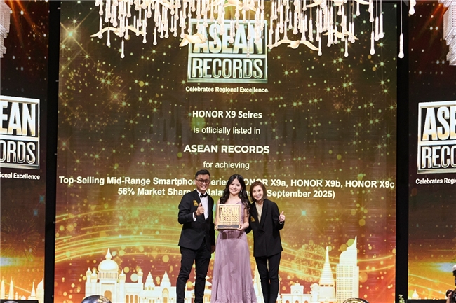 HONOR马来西亚的HONORX9系列智能手机凭借截至2025年7月在马来西亚中端智能手机市场占有率达56%的出色成绩,荣获《东盟纪录》认证,成为“最畅销中端智能手机系列”。该成就展现本地品牌在技术创新与市场影响力上的卓越表现