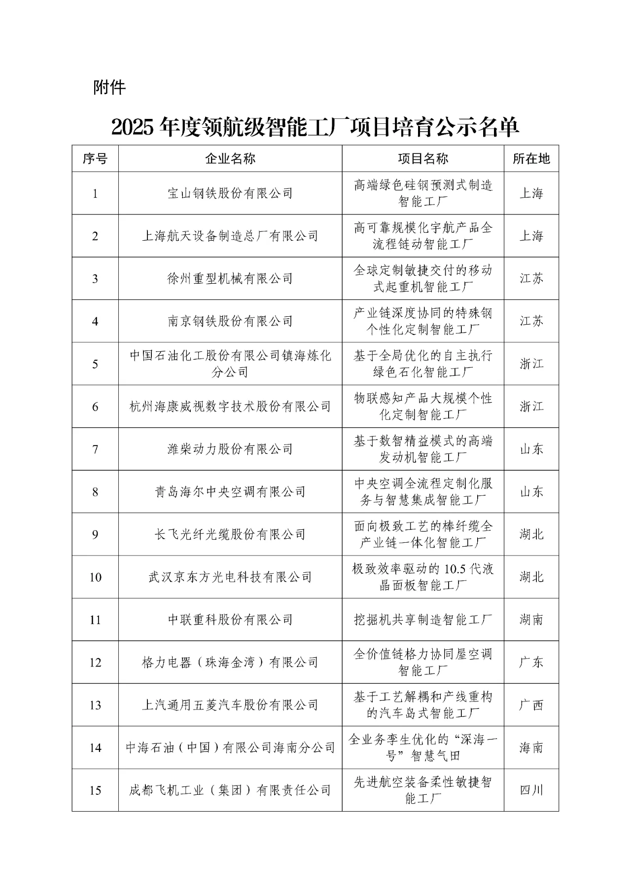近日,工信部公示2025年度领航级智能工厂项目培育名单,宝山钢铁股份有限公司、上海航天设备制造总厂有限公司、徐州重型机械有限公司、南京钢铁股份有限公司等15家企业工厂入选。