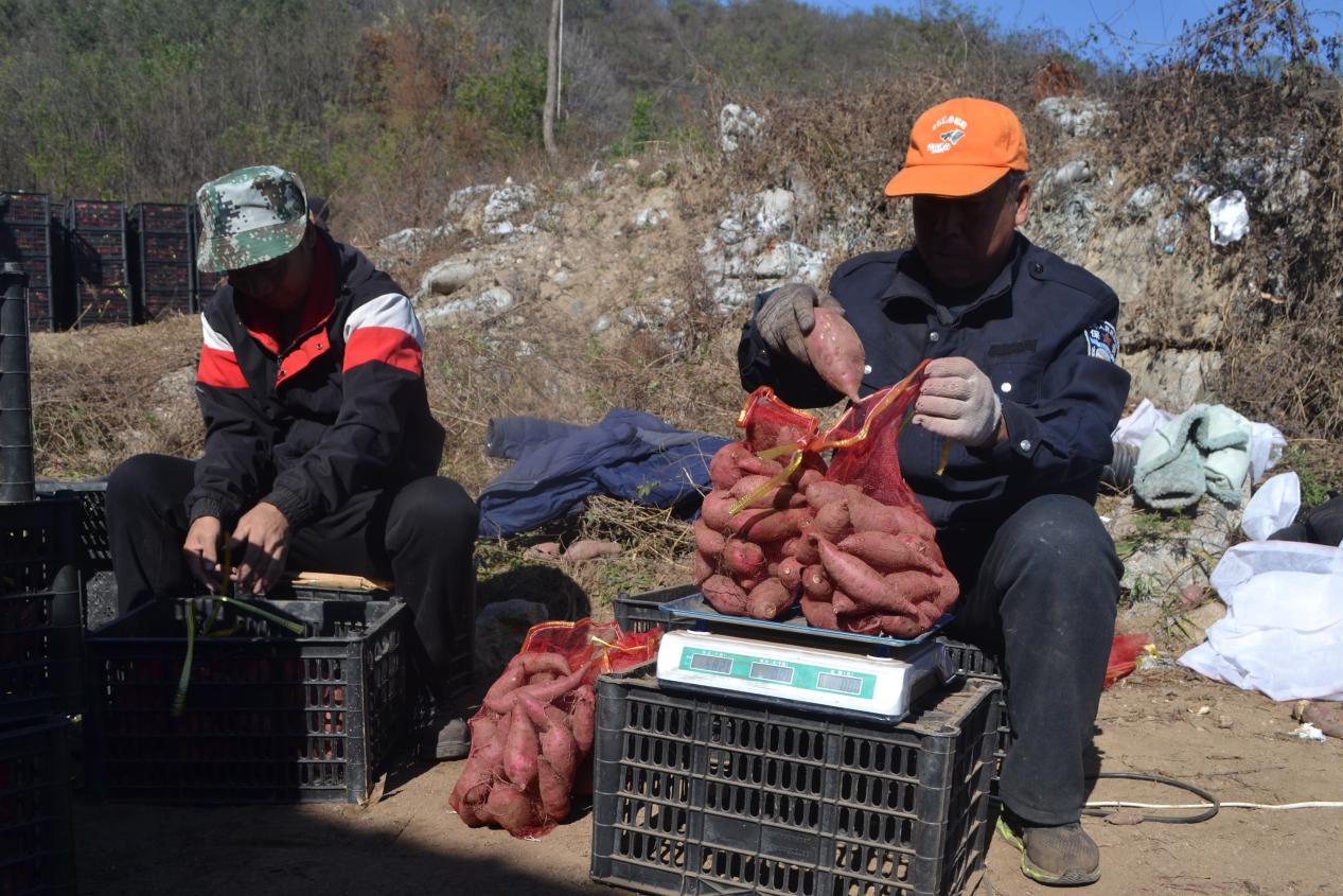 该蜜薯种植基地作为夏庄乡党委、保变电气驻村工作队、菜池村党支部共同设立的党建示范基地,在不定期开展党员奉献日系列活动的同时,积极吸收村内80余名劳动服务岗参与务工,有效促进脱贫村民在家门口就业增收。基地优选高品质慧谷二号蜜薯种苗,采用现代化的方式进行科学种植和管理。从初夏到深秋,经过半年的辛苦劳作,蜜薯喜获丰收,却因各种原因面临滞销难题。