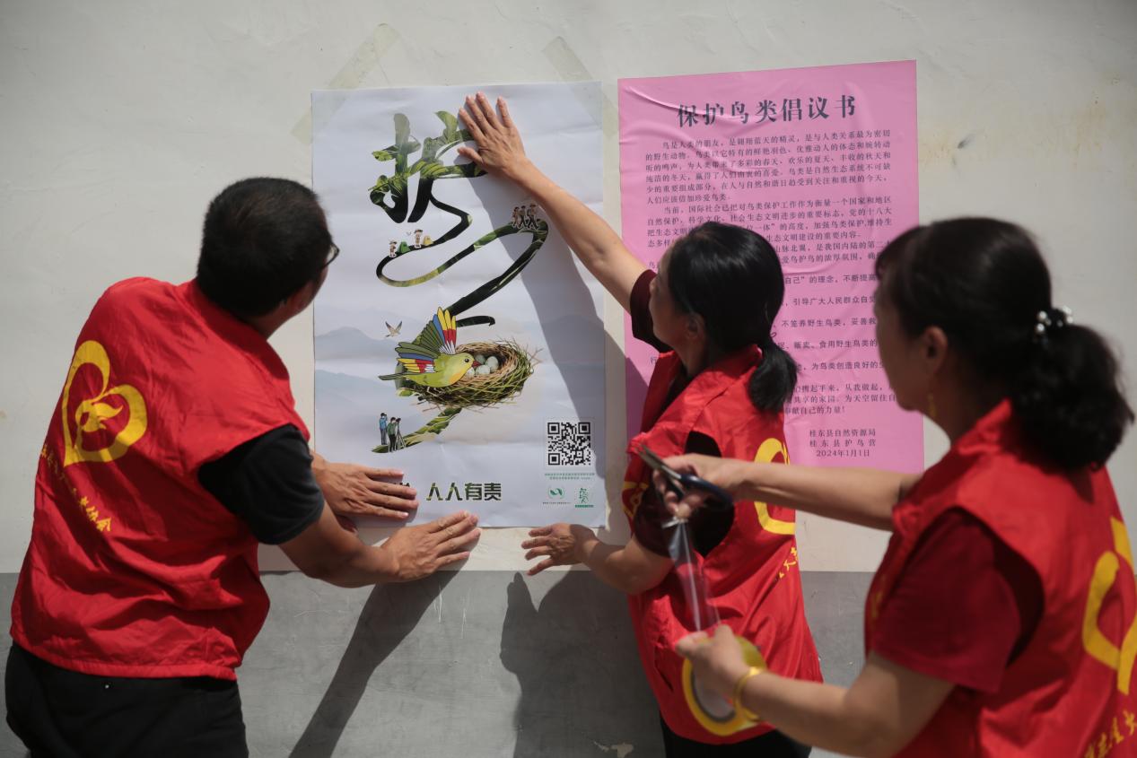 同时,该县完善了群众参与机制。在各乡镇、村(社区),通过应急广播系统播放候鸟保护知识,在各地设立候鸟保护宣传栏,定期向社区居民宣传相关知识,鼓励广大群众积极参与候鸟保护。联合县教育部门发布《关于贯彻落实〈加强中小学生野生动物保护工作和森林草原防火宣传教育工作〉的通知》(桂林字〔2025〕12号),推动保护意识从校园抓起,构建“小手拉大手”的宣传格局。创新构建“护鸟员+志愿者+村民”的网格化管理模式,将护鸟纳入村规民约,形成了“政府主导、科技支撑、全民参与”的治理模式。