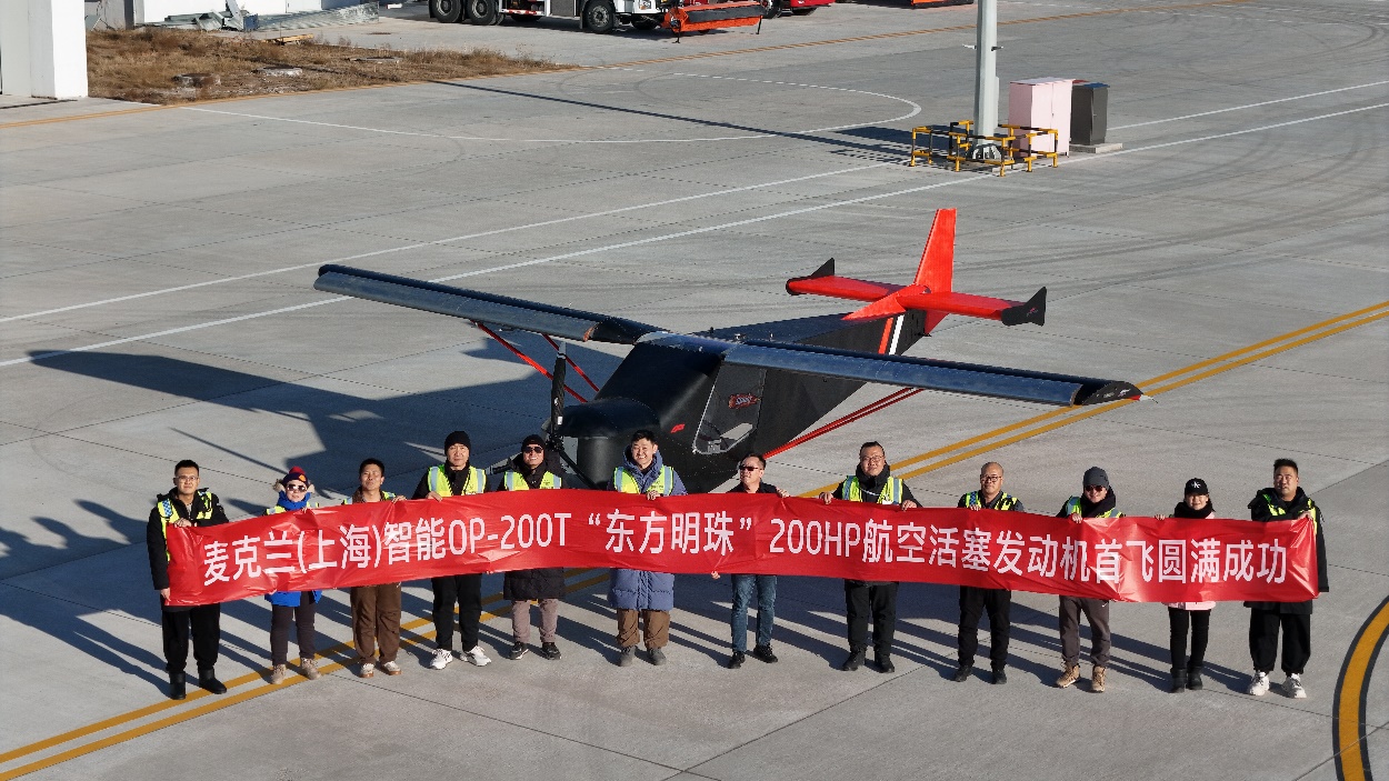 本次与无人机一同成功首飞的,还有麦克兰公司自主研发的200马力“东方明珠”OP-200T航空活塞发动机。长期以来,国内大型无人机所用的大马力航空活塞发动机超八成依赖进口,存在供应链安全风险。“东方明珠”发动机的研发成功,打破了国外在200-300马力级航空动力领域的垄断,不仅为国产大型无人机提供了可靠的“中国心”,也诞生了一款具备参与全球市场竞争实力的上海智造高端产品。