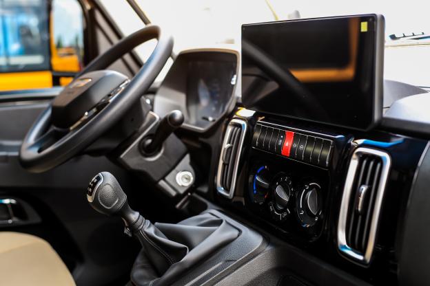运输从业者大多一天的生活都是在车上度过的,为了给运输人提供一个舒适的环境,得意的内饰设计更加乘用化,如设在仪表台中控区内的换挡杆,让驾驶更轻松;适应多样化握持方式的四幅式多功能方向盘,集合了多种功能按键,一手掌控娱乐、巡航;NVH声学包打造静谧空间;可选配12.3寸高清触控大屏,搭载第3代IVECONNECT智能交互系统,用户还可以通过蓝牙和USB开启手机互联功能,实现各种APP软件信息的同步操作,提高了工作效率,也让用户真正享受到高效运输的便捷.