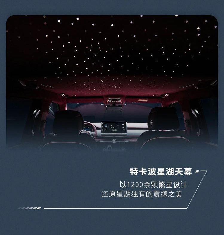 此次还发布了售价70万元的坦克700 Hi4-T限定版,拥有灵感来源于观星地特卡波湖星空的1200余颗灯珠组成的星湖天幕。