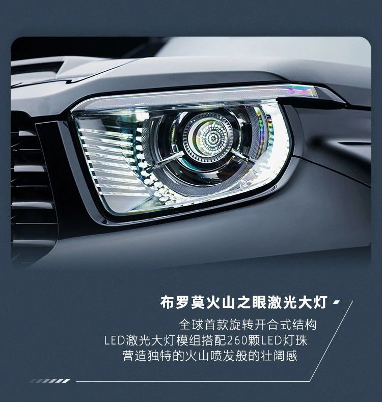 从外观上看,坦克700 Hi4-T就是硬朗的方盒子,长宽高分别为5090/2061/1952mm,轴距为3000mm,采用全球首创旋转开合式遮挡叶片的激光大灯,搭配260颗LED灯珠,远光灯采用激光模组,大幅提升了夜间的照射距离。