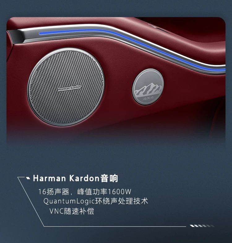 内饰层面,坦克700 Hi4-T搭载了铝板横跨仪表,仪表台、门板、扶手等部位也都采用了超纤皮包裹,尤其是搭载新车还搭载了16专属扬声器的哈曼卡顿音响,顶级豪车范儿氛围满满。
