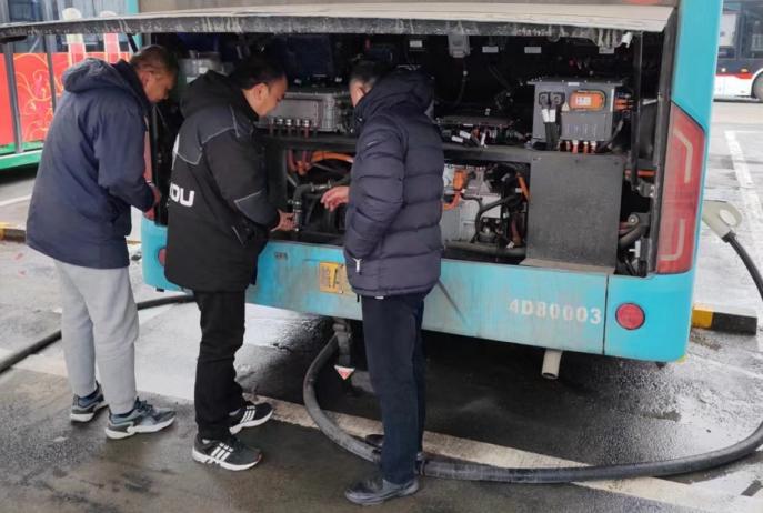 面对春运阶段雨雪、寒潮、大风等“速冻”模式,安凯售后“满电待机”。2024年初,合肥市首条氢燃料电池公交线路开通运行,首批23辆安凯氢燃料公交投入示范应用。为了保障这批车辆在春运期间也能“氢”快平稳,安凯客车售后服务团队秉承“信息准确,反应敏捷,处理有效,客户满意”的服务理念,无惧风雪严寒,坚守岗位,护航春运“氢”云路,获得客户高度认可。