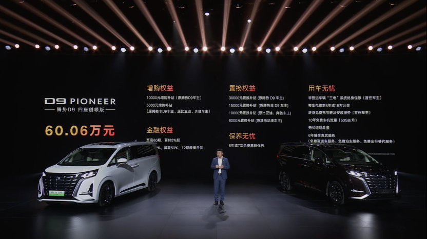 特别版车型腾势D9四座创领版,官方指导价60.06万元。