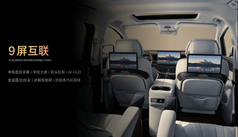比如全系标配真皮材质的实体按键方向盘;为了更便捷地关门,全系标配了电吸门,可以满足全车人娱乐和生活需求的九屏互联,防止老人和儿童误操作的二排物理快捷键。