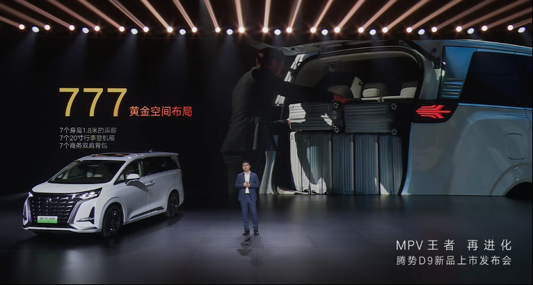 由于采用777黄金空间布局,让腾势D9的车内空间更加宽敞实用。