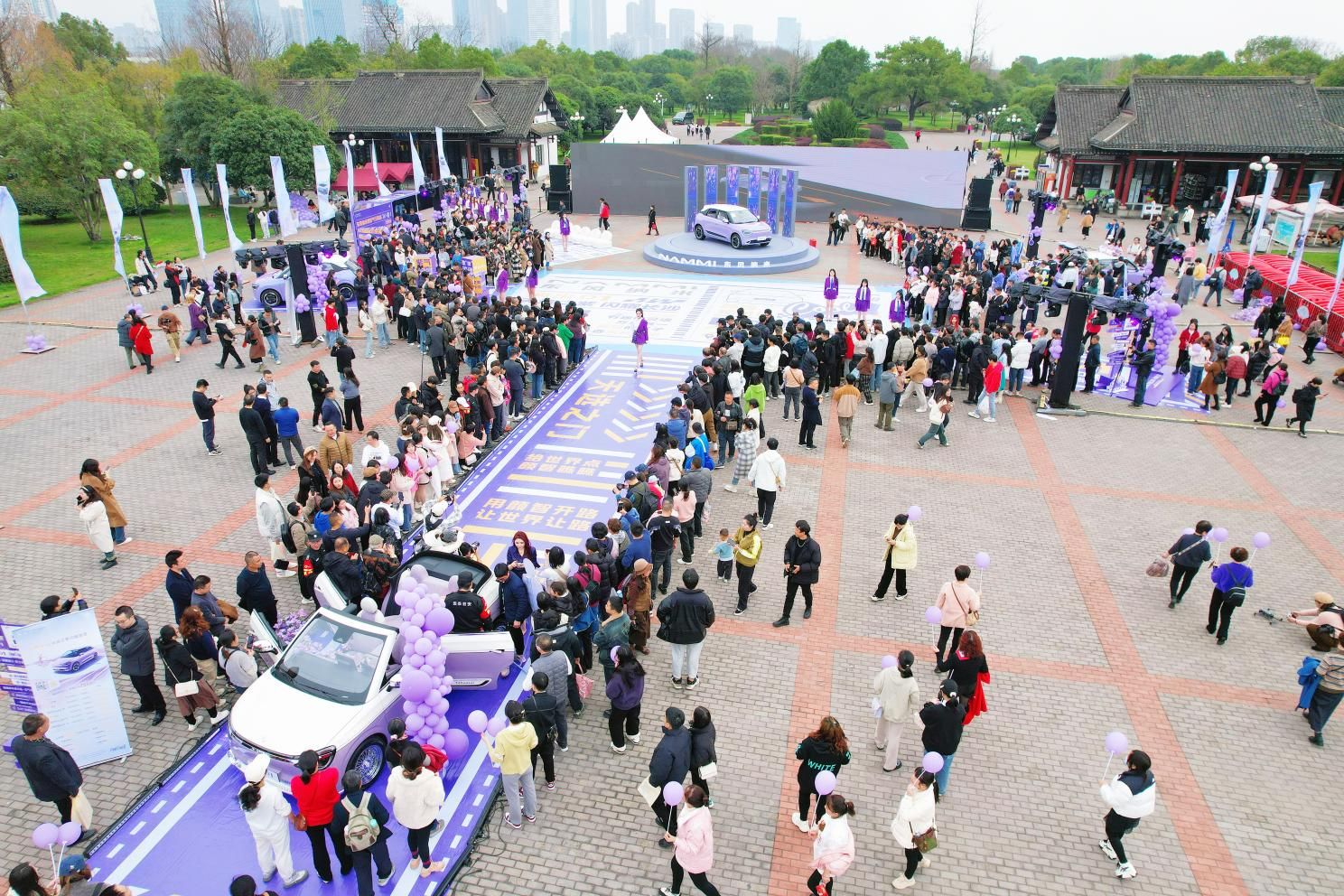 活动现场,一场与用户共创的沉浸式行为艺术Party,在橘子洲头上演,快闪、巡演等各式活动,吸引了众多观众前来打卡,“颜力觉醒区”“智成一派区”“紫气全开区”等不同主题的互动区,更是人气爆棚,热“纳”滚烫的氛围,掀起了一轮又一轮的紫色“风暴”,让消费者近距离领略了东风纳米01幻想紫的迷人风采,更亲身体验了这款车型的极“智”驾趣。