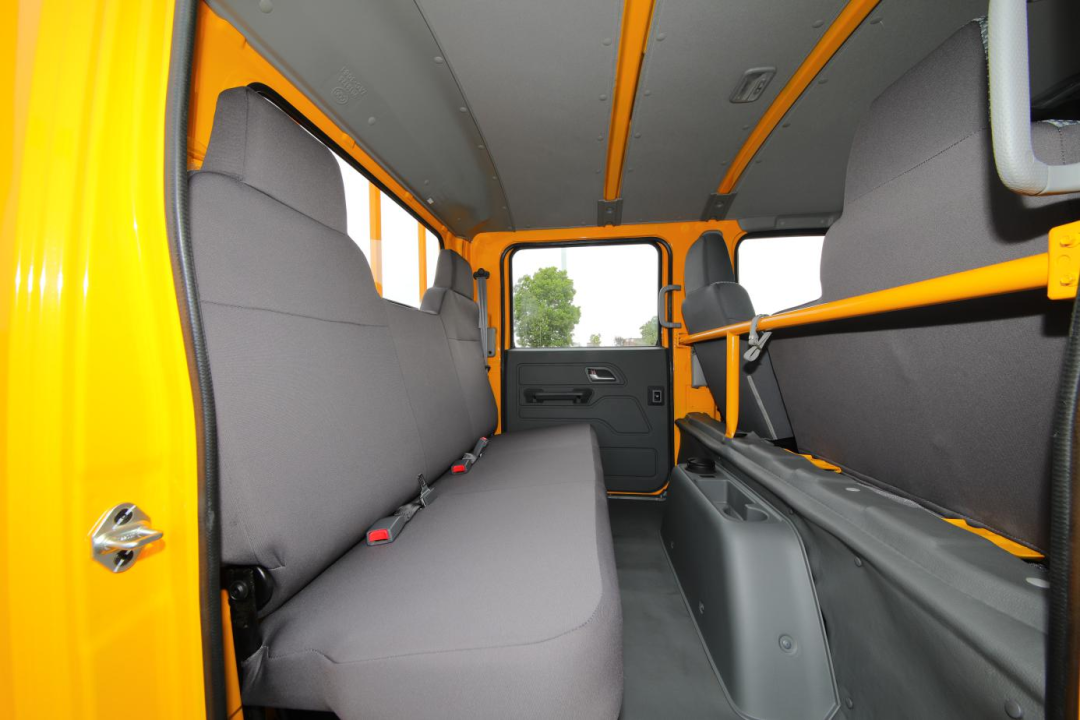 180车架平台匹配4吨级后桥,让帅铃S3双排座拥有更强的载重能力,在运输抢修材料等较重的货物时更加游刃有余。再搭配4.875和5.375两种后桥速比,无论是重载爬坡还是快速机动,帅铃S3双排座都能从容应对。市政抢修用车场景复杂,帅铃S3双排座搭载的气刹制动,驻车时制动力大,坡路不溜车,运输时行车制动和施工时驻车制动安全高,确保整车安全。