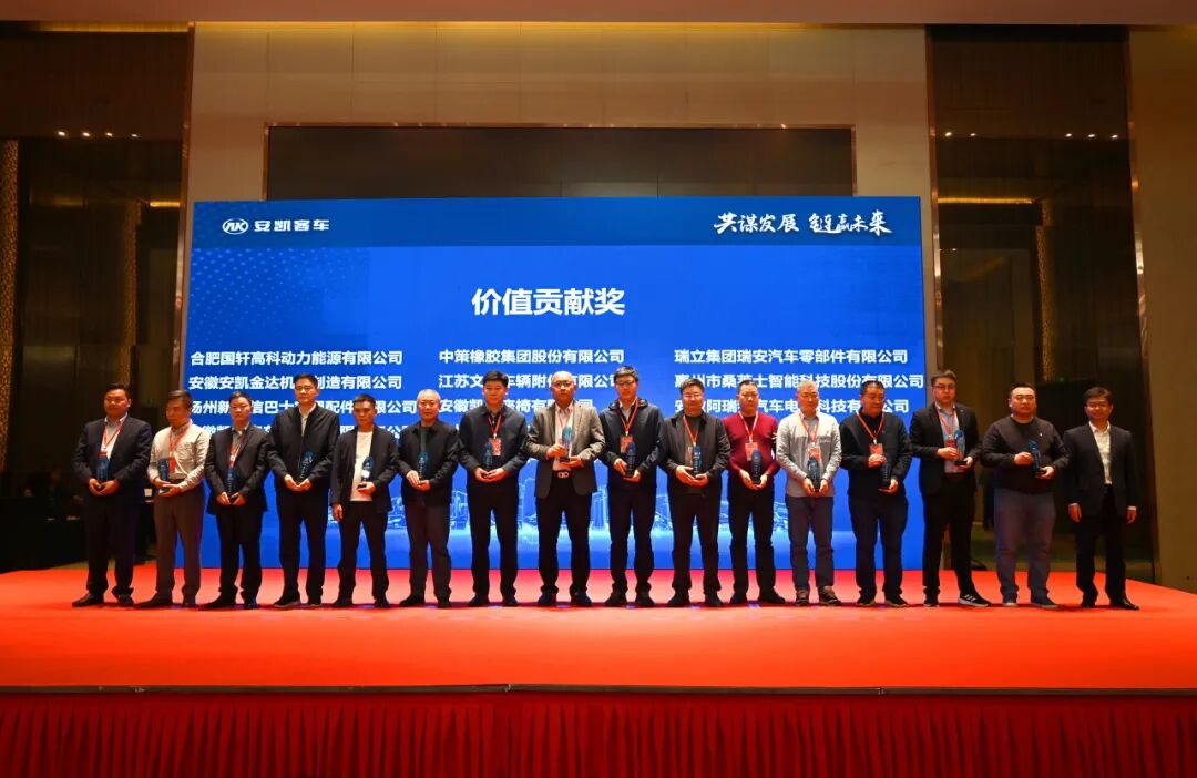 志同者道合,道合则心通。安凯客车能稳步迈向新征程,离不开广大合作伙伴的鼎力支持,大会对2023年度表现优异的供应商进行了表彰,现场颁发了优秀供应商奖、质量领先奖、协同开发奖、价值贡献奖。会议期间,还进行了参观安凯工厂及精品展车等活动。