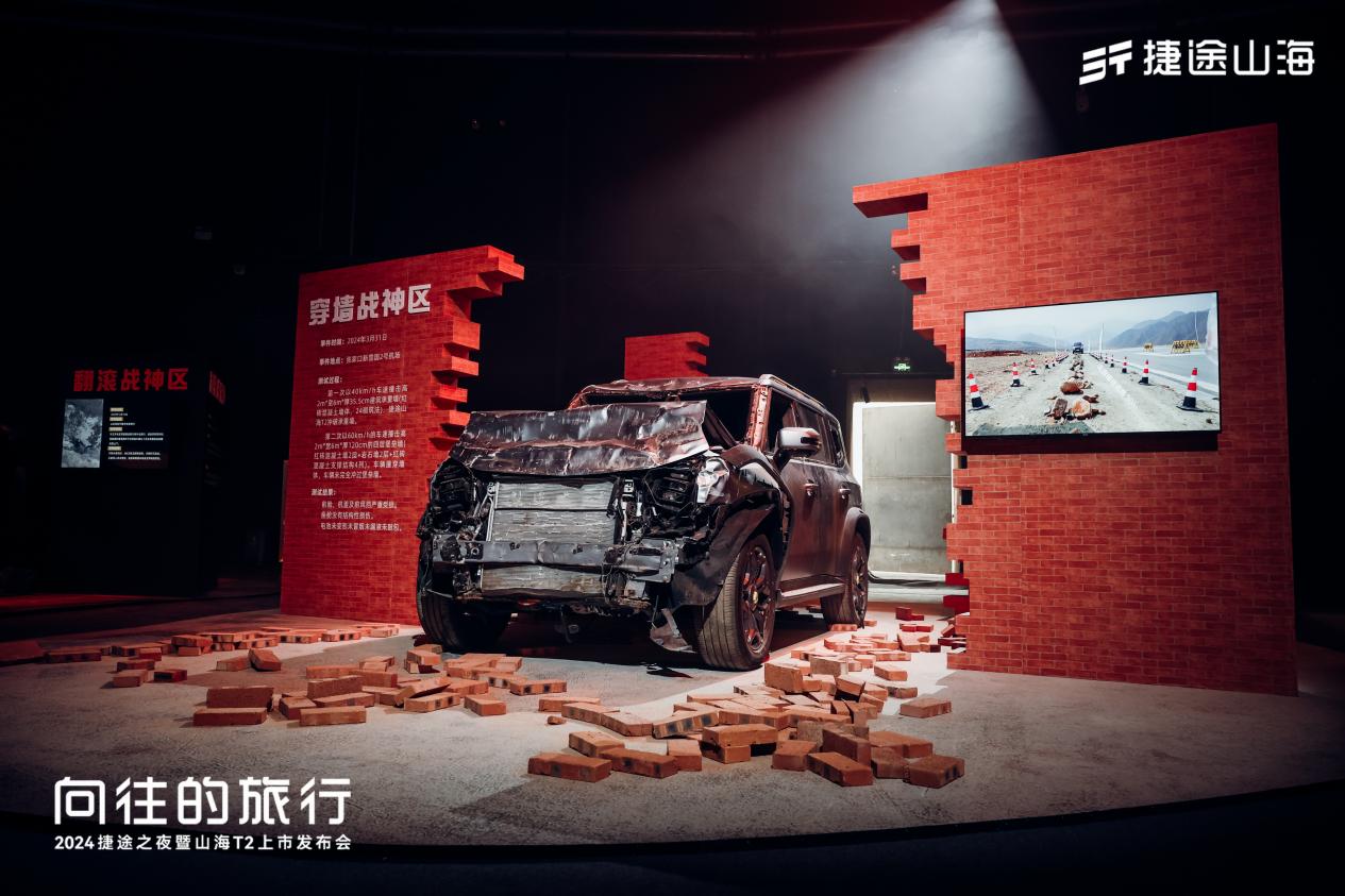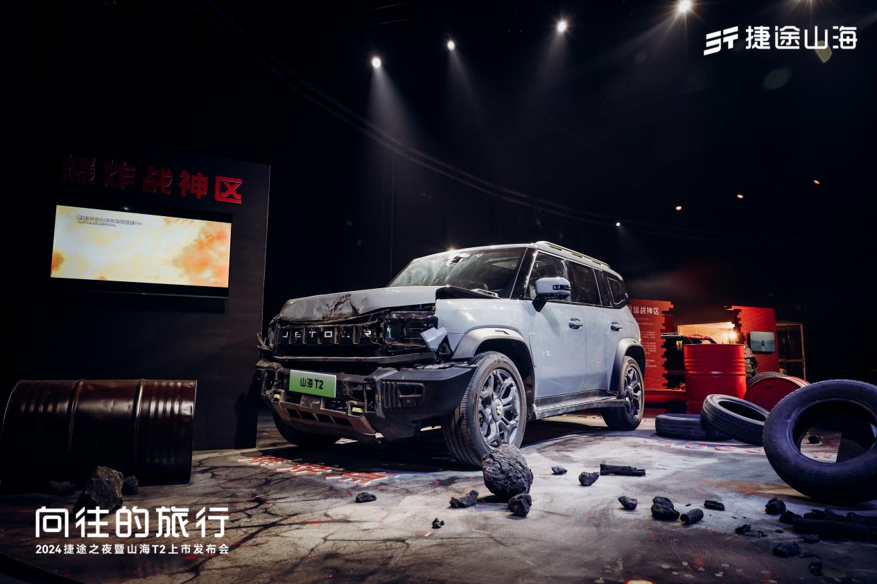 安全是捷途汽车坚守的底线。山海T2采用钢笼式车身结构,扭转刚度达到32000N·m/deg,高强度钢占比80%,装甲级的防护,堪比战场堡垒。为了充分展现山海T2的安全性能,捷途之夜现场特设了三大主题战神区,以撞墙、爆炸、翻滚等极具冲击力的场景,大秀新车的“战场级安全”。