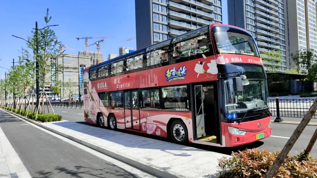 “赏花专线”将从上海市中心人民广场出发,串联起新天地-徐汇滨江-上海植物园等展区,以全新视角带领游客们尽情感受繁花似锦,尽享一场视觉盛宴。红色车身上描绘着花展相关元素,即便置身繁华街头,亦化作一道引人驻足的亮丽风景,能轻易成为夺人眼球的焦点。