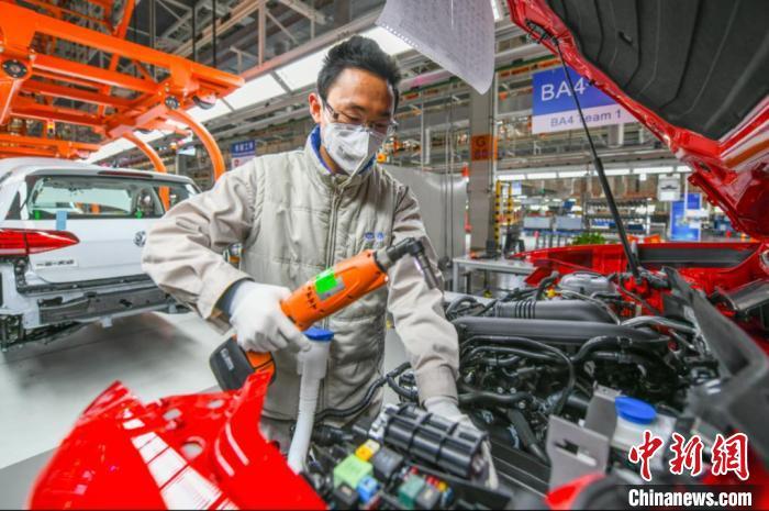 广东佛山的一汽-大众华南生产基地,工人们正在生产线上忙碌。企业供图