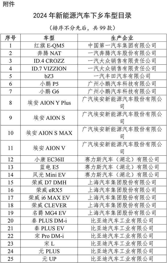 中新网5月16日电(中新财经记者葛成)日前,工信部等五部门发布通知,联合组织开展2024年新能源汽车下乡活动。据悉,本次活动时间为2024年5月-12月,活动方式包括开展集中展览展示、试乘试驾等,共有99款车型入选目录。