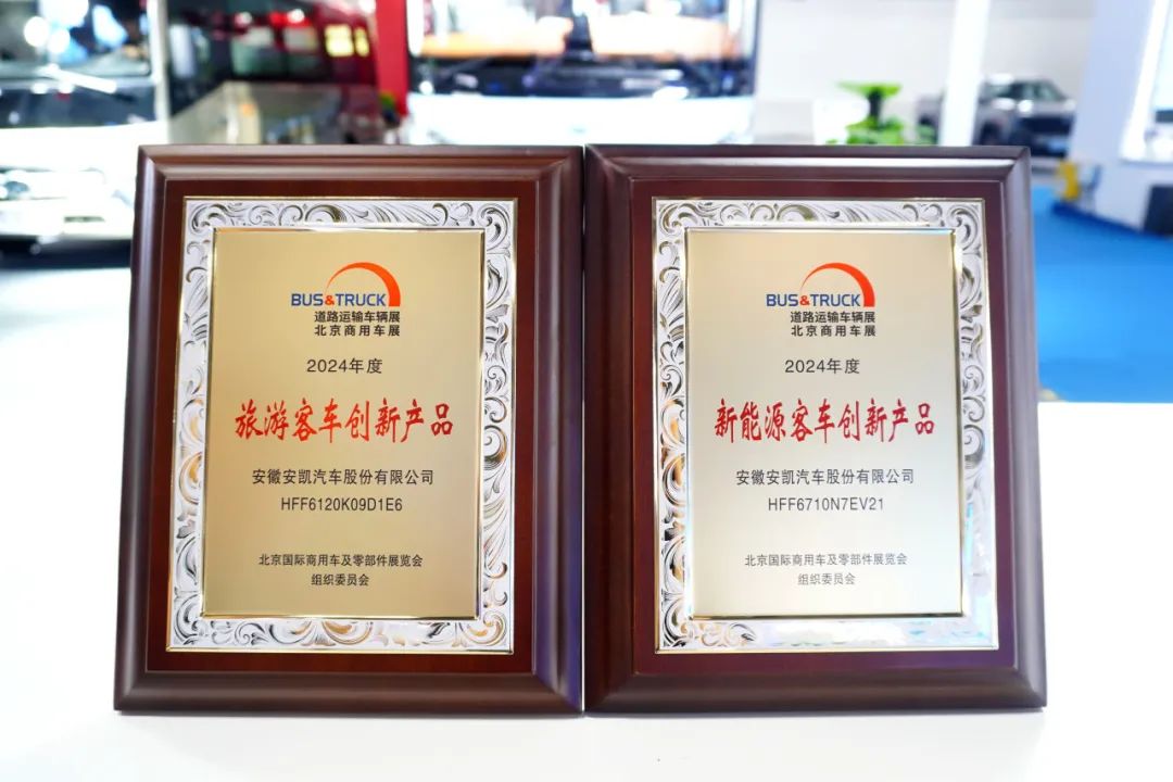 此次展会,安凯客车携全新升级款N8双前挡豪华客车、纯电动宝斯通N7重磅亮相,并分别荣获“旅游客车创新产品”奖和“新能源客车创新产品”奖。