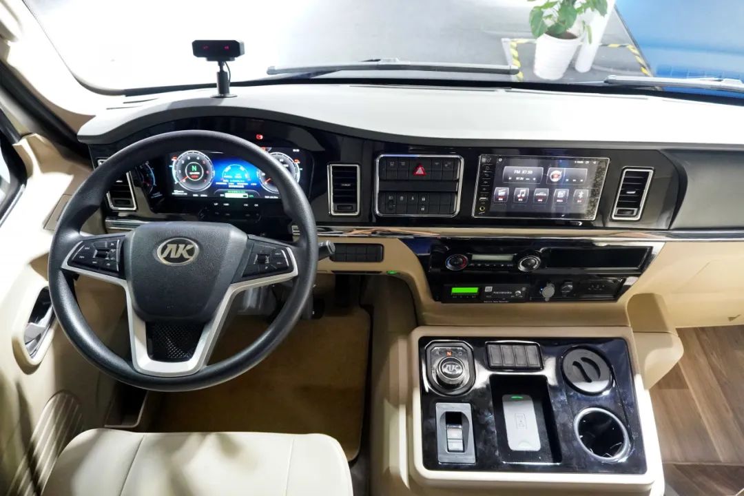 此外,N8双前挡豪华客车搭载安凯“PM1.0级”第五代内环境管理系统,优化了核心NVH部件,打造静谧驾乘。乘客区装载豪华高靠背航空座椅,纵享舒适出行;驾驶区轿车化设计,内有彩色液晶仪表、大屏智能终端、多功能方向盘、EPB电子手刹等智能化科技加持,轻松驾驭,得心应手。