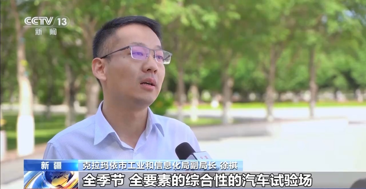 克拉玛依市工业和信息化局副局长 徐祺:我们要打造一个全天候、全季节、全要素的综合性的汽车试验场,这样的试验场,不仅能够实现“三高”的测试,还能够实现冰面测试、扬尘测试、高速测试以及现在汽车出口所需要的模仿国外环境的各种综合性的验证。