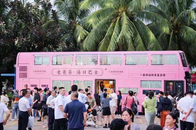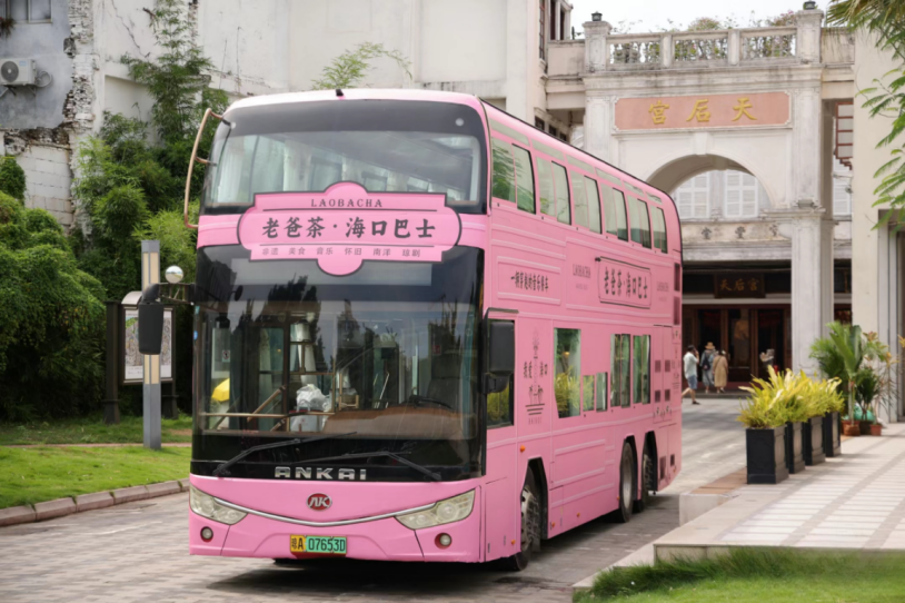 在外观设计上,这辆“老爸茶·海口巴士”以粉色为底色,打造南洋复古风;在体验内容设计上,该巴士以“喝茶看风景,一路好心情”为主题,摒弃传统交通工具概念,让城市、人、茶三者“畅意对话”,为市民游客带来“沉浸式”新体验。