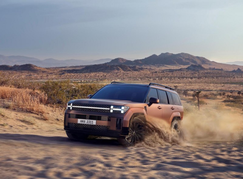 外观方面,第五代胜达采用了方正硬朗的设计语言,巧妙契合当下市场对"方盒子"车型的偏好。硕大的H型贯穿式前大灯与中网浑然一体,视觉冲击力十足。下方保险杠的H形设计与前脸交相呼应,整车辨识度极高。