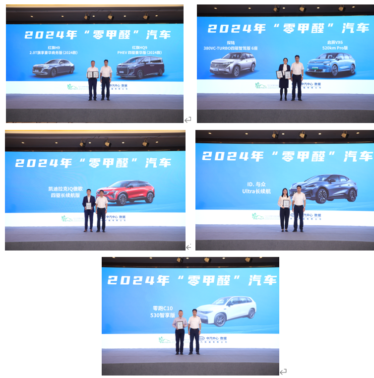 依据《“零甲醛”汽车产品设计技术规范(2023年版)》,中汽数据遴选出2024年“零甲醛”汽车典型案例,分别是一汽红旗红旗H92.0T旗享豪华商务版(2024款)、一汽红旗红旗HQ9PHEV四驱豪华版(2024款)、东风日产探陆380VC-TURBO四驱智驾版6座、东风日产启辰VX6520KMPro版、上汽通用凯迪拉克IQ傲歌四驱长续航版、大众汽车(安徽)ID.与众Ultra长续航和零跑汽车零跑C10530智享版,以上7款车型代表了我国车企在车内甲醛性能方面的优秀水平,来自上述企业的专家分享了健康汽车开发方面的先进经验。